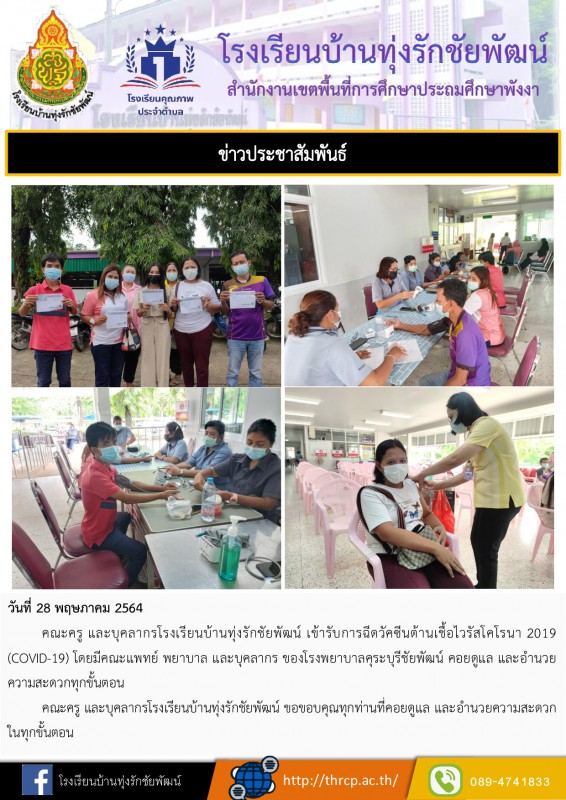 คณะครูและบุคลากร พร้อมใจกันฉีดวัคซีน ต้านเชื้อโควิด19 ณ โรงพยาบาลคุระบุรีชัยพัฒน์