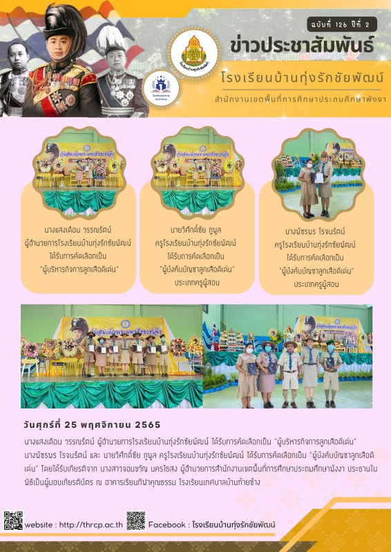 25 พฤศจิกายน 2565 รับเกียรติบัตรผู้บริหารกิจการลูกเสือดีเด่น และผู้บังคับบัญชาลูกเสือดีเด่น