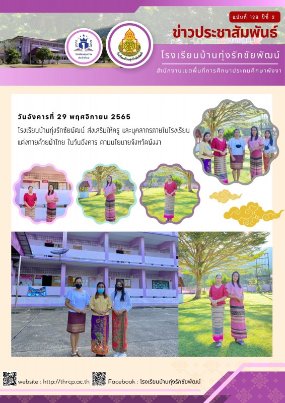 โรงเรียนบ้านทุ่งรักชัยพัฒน์ ส่งเสริมให้ครู และบุคลากรภายในโรงเรียน แต่งกายด้วยผ้าไทย ในวันอังคาร ตามนโยบายจังหวัดพังงา |
