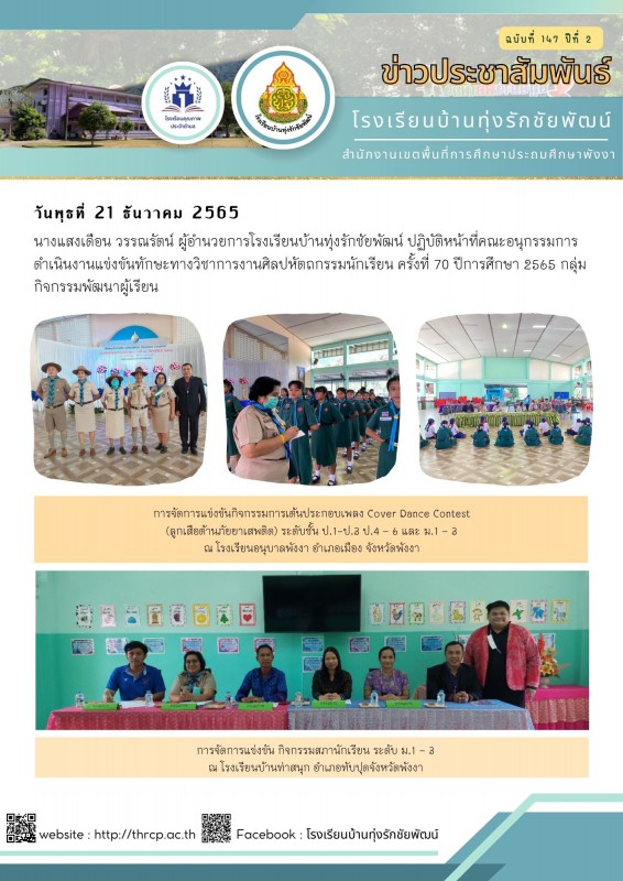 นางแสงเดือน วรรณรัตน์ ผู้อำนวยการโรงเรียนบ้านทุ่งรักชัยพัฒน์ ปฏิบัติหน้าที่คณะอนุกรรมการดำเนินงานแข่งขันทักษะทางวิชาการงานศิลปหัตถกรรมนักเรียน ครั้งที่ 70 ปีการศึกษา 2565 กลุ่มกิจกรรมพัฒนาผู้เรียน |