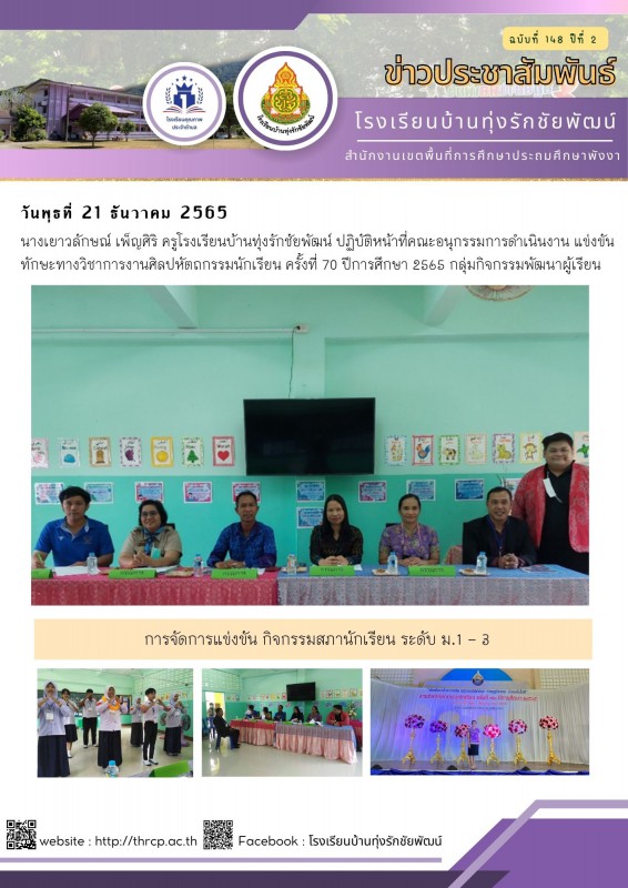 21 ธันวาคม 2565 ปฏิบัติหน้าที่คณะอนุกรรมการดำเนินงาน แข่งขันทักษะทางวิชาการงานศิลปหัตถกรรมนักเรียน ครั้งที่ 70 ปีการศึกษา 2565 กลุ่มกิจกรรมพัฒนาผู้เรียน