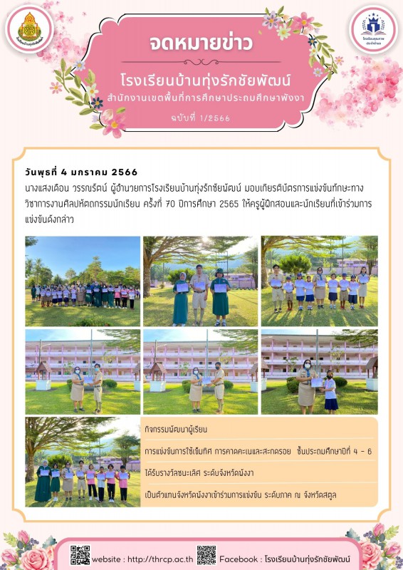 4 มกราคม 2566 มอบเกียรติบัตรการแข่งขันทักษะทางวิชาการงานศิลปหัตถกรรมนักเรียน ครั้งที่ 70 ปีการศึกษา 2565