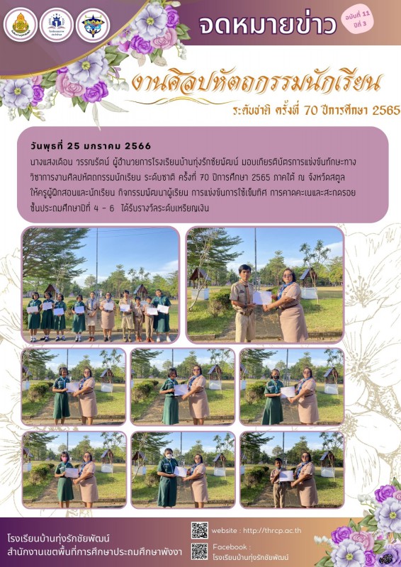 25 มกราคม 2566 มอบเกียรติบัตรการแข่งขันทักษะทางวิชาการงานศิลปหัตถกรรมนักเรียน ระดับชาติ ครั้งที่ 70 ปีการศึกษา 2565 ภาคใต้