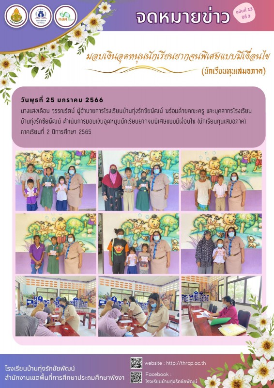 25 มกราคม 2566 มอบเงินอุดหนุนนักเรียนยากจนพิเศษแบบมีเงื่อนไข (นักเรียนทุนเสมอภาค) ภาคเรียนที่ 2 ปีการศึกษา 2565