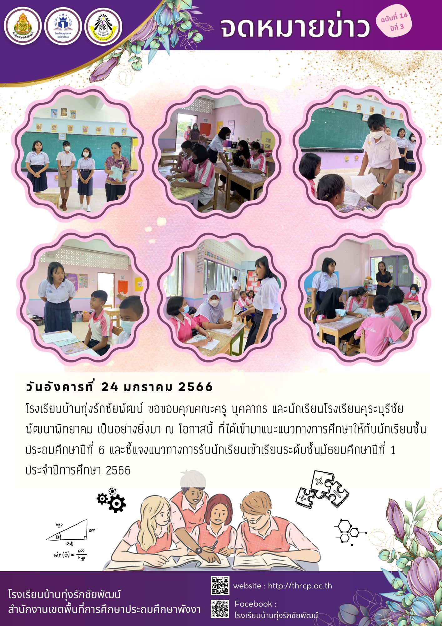 24 มกราคม 2566 โรงเรียนคุระบุรีชัยพัฒนาพิทยาคม เข้ามาแนะแนวทางการศึกษา