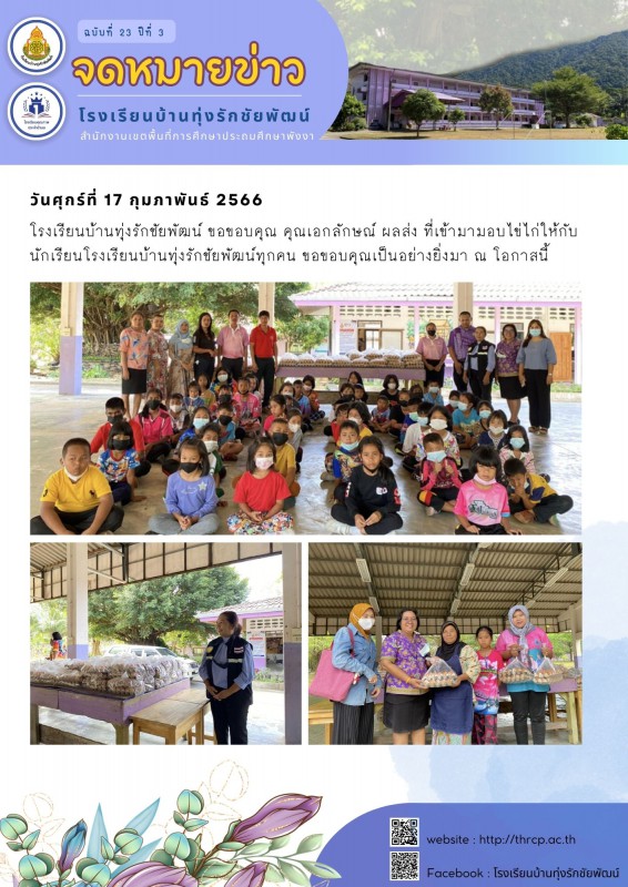 โรงเรียนบ้านทุ่งรักชัยพัฒน์ ขอขอบคุณ คุณเอกลักษณ์ ผลส่ง ที่เข้ามามอบไข่ไก่ให้กับนักเรียนโรงเรียนบ้านทุ่งรักชัยพัฒน์ทุกคน ขอขอบคุณเป็นอย่างยิ่งมา ณ โอกาสนี้ |