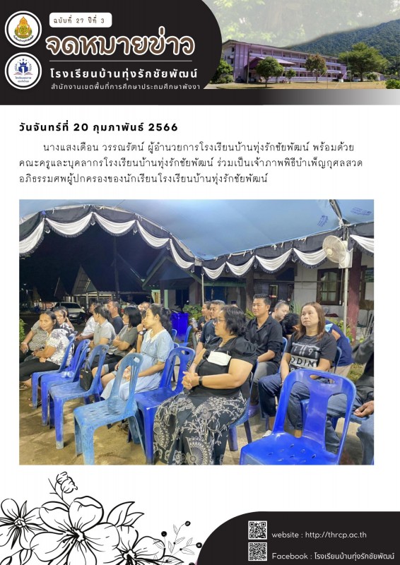 20 กุมภาพันธ์ 2566 ร่วมเป็นเจ้าภาพพิธีบำเพ็ญกุศลสวดอภิธรรมศพผู้ปกครองของนักเรียน