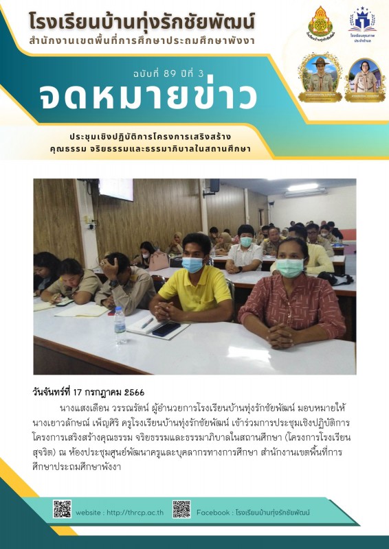 17 กรกฎาคม 2566 ประชุมเชิงปฏิบัติการโครงการเสริมสร้างคุณธรรมจริยธรรมและธรรมาภิบาลในสถานศึกษา (โครงการโรงเรียนสุจริต)