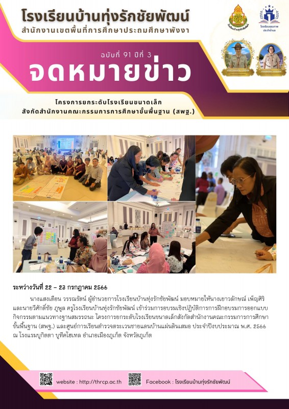 นางแสงเดือน วรรณรัตน์ ผู้อำนวยการโรงเรียนบ้านทุ่งรักชัยพัฒน์ มอบหมายให้นางเยาวลักษณ์ เพ็ญศิริ และนายวีศักดิ์ชัย ภูพูล ครูโรงเรียนบ้านทุ่งรักชัยพัฒน์ เข้าร่วมการอบรมเชิงปฏิบัติการการฝึกอบรมการออกแบบกิจกรรมตามแนวทางฐานสมรรถนะ โครงการยกระดับโรงเรียนขนาดเล็กสังกัดสำนักงานคณะกรรมการการศึกษาขั้นพื้นฐาน (สพฐ.) และศูนย์การเรียนตำรวจตระเวนชายแดนบ้านแผ่นดินเสมอ ประจำปีงบประมาณ พ.ศ. 2566 |