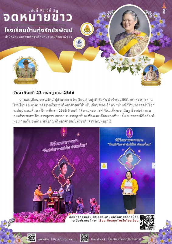 23 กรกฎาคม 2566 พิธีรับตราพระราชทาน “บ้านนักวิทยาศาสตร์น้อย” ระดับประถมศึกษา ปีการศึกษา 2565