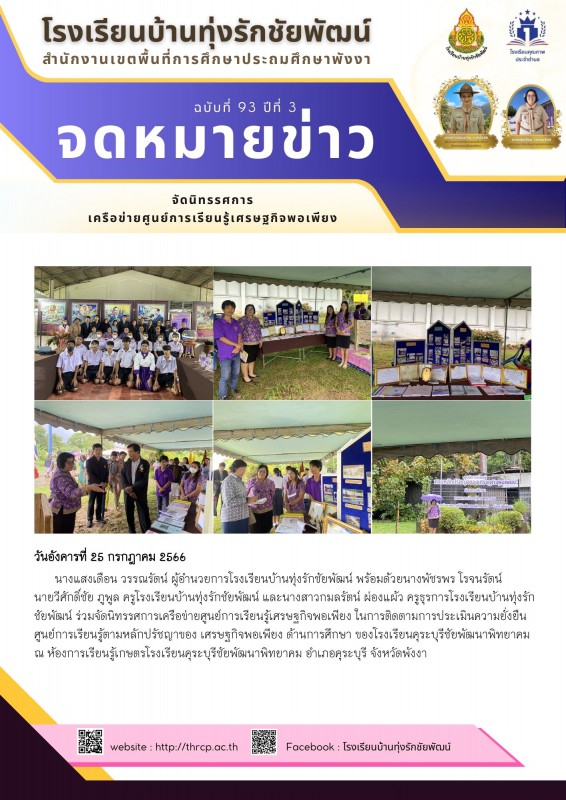 25 กรกฎาคม 2566 จัดนิทรรศการคือยกให้ศูนย์การเรียนรู้เศรษฐกิจพอเพียง ณ โรงเรียนคุระบุรีชัยพัฒนาพิทยาคม