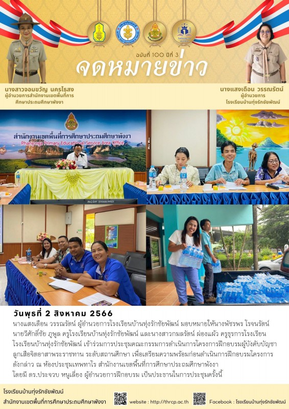 2 สิงหาคม 2566 ประชุมคณะกรรมการดำเนินการโครงการฝึกอบรมผู้บังคับบัญชาลูกเสือจิตอาสาพระราชทาน ระดับสถานศึกษา