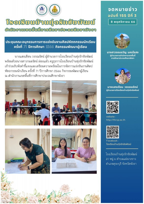 7 พฤศจิกายน 66 ประชุม คกก. การแข่งขันงานศิลปหัตถกรรมนักเรียน ครั้งที่ 71 ปีการศึกษา 2566 กิจกรรมพัฒนาผู้เรียน