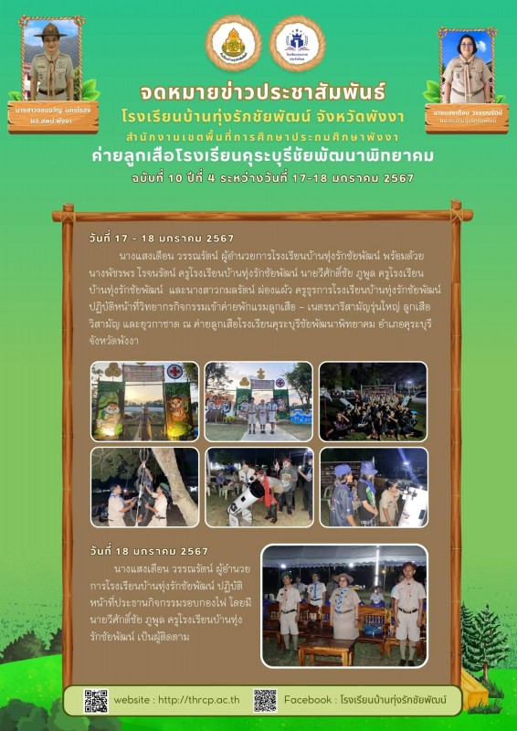 17-18 มกราคม 2567 กิจกรรมเข้าค่ายพักแรมลูกเสือ - เนตรนารีสามัญรุ่นใหญ่ ลูกเสือวิสามัญ และยุวกาชาด ณ ค่ายลูกเสือโรงเรียนคุระบุรีชัยพัฒนาพิทยาคม