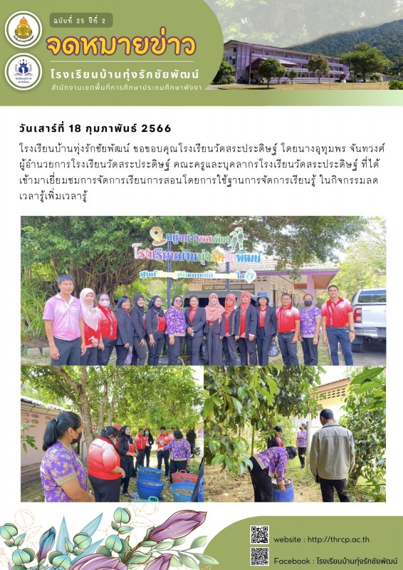 18 กุมภาพันธ์ 2566 โรงเรียนวัดสระประดิษฐ์ ที่ได้เข้ามาเยี่ยมชมการจัดการเรียนการสอนโดยการใช้ฐานการจัดการเรียนรู้
